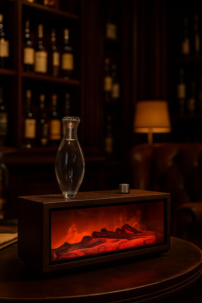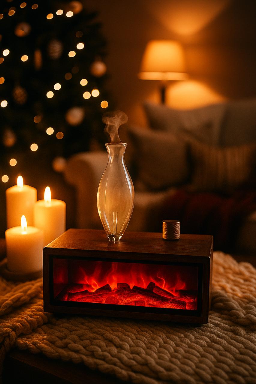 Dual Experience: A statement décor piece that functions as both an aroma diffuser and a glowing fireplace accent.