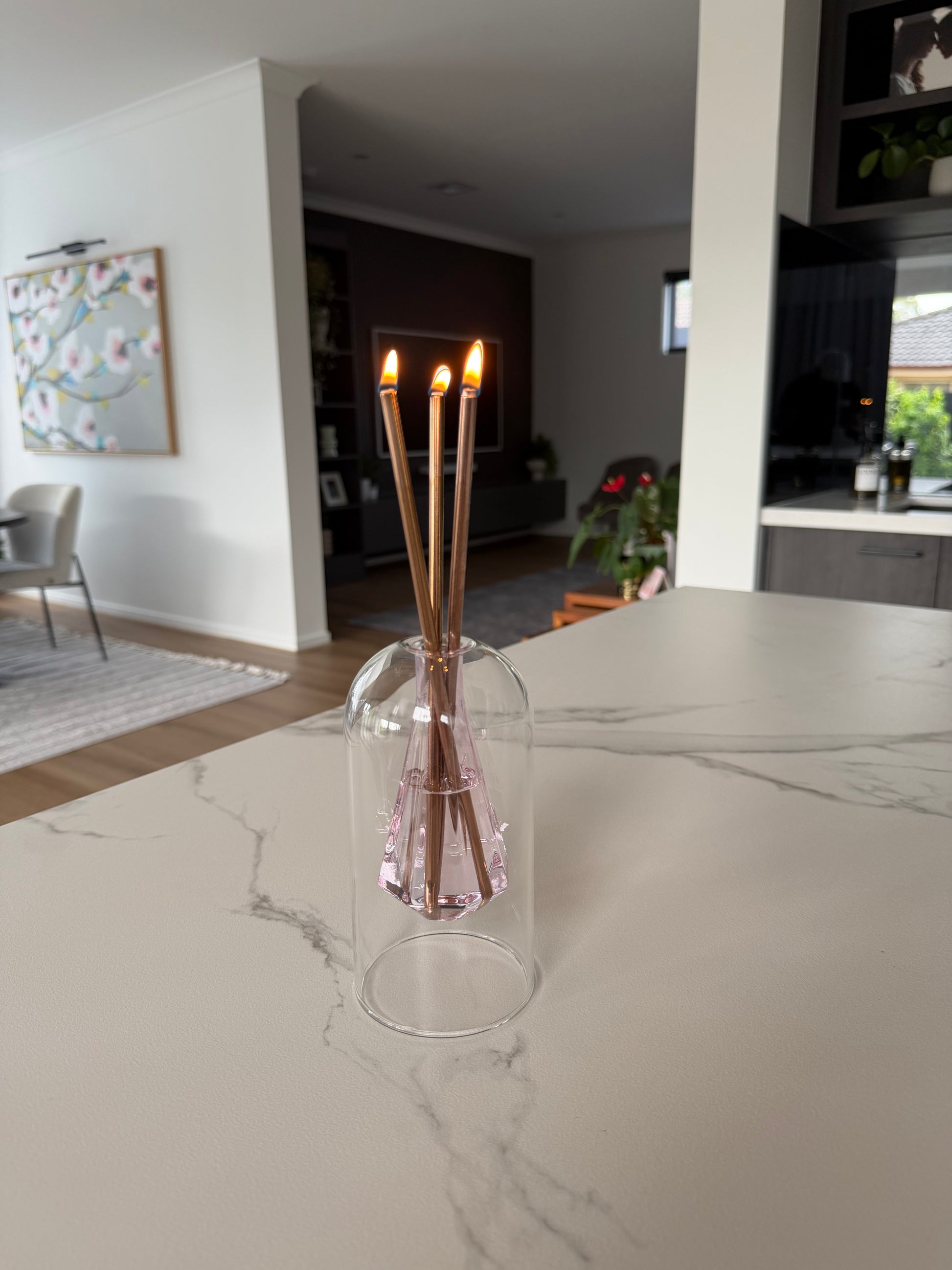 Your Esméa vase is designed exclusively for Lumora Oil, ensuring a soot-free, smoke-free, and wax-free glow that fills your home with warmth and serenity. Each 500 ml bottle provides up to 50 hours of ambient illumination.